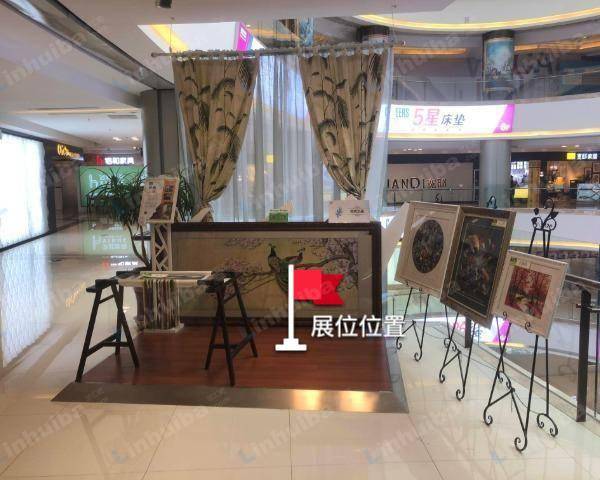 该展位位于华南红星美凯龙五层东庭北扶梯口,展位周边店铺以实木家具、高端皮质家具、刺绣窗帘等类为主。展位人流以中年人为主,展位推荐宣传类、推广类、展示类。